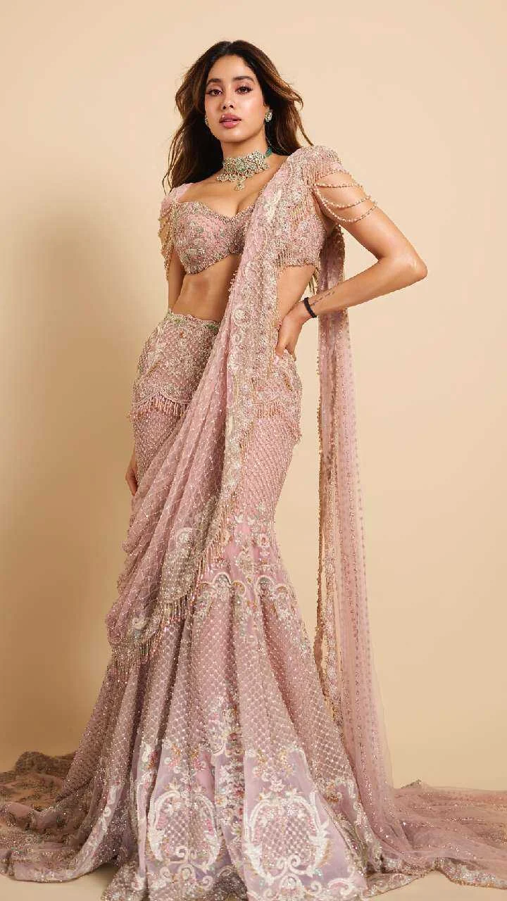 अगर आप शादी में कुछ डिफरेंट और हैवी ट्राई करना चाहती हैं, तो जाह्नवी के इस गोल्डन एंब्रॉयडरी लहंगा को कॉपी करना न भूलें।