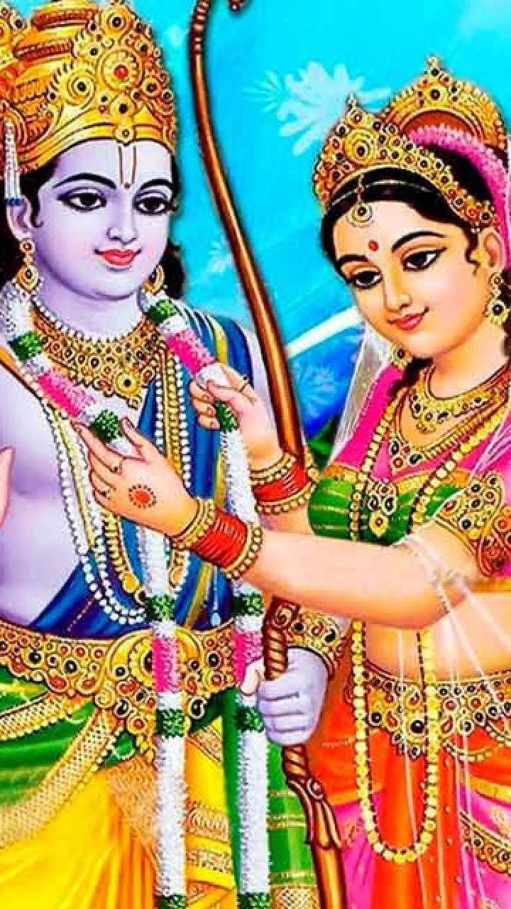 ध्यायेदाजानुबाहुं धृतशरधनुषं बद्धपद्मासनस्थं। पीतं वासो वसानं नवकमलदलस्पर्धिनेत्रं प्रसन्नम्॥ वामाङ्कारूढ-सीता-मुखकमल-मिलल्लोचनं नीरदाभं। नानालङ्कारदीप्तं दधतमुरुजटामण्डनं रामचन्द्रम्॥