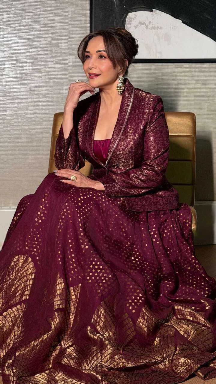 एक्ट्रेस के पास आउटफिट का शानदार कलेक्शन है। अगर आप इस वेडिंग सीजन गॉर्जियस दिखना चाहती हैं, तो माधुरी की इन ड्रेसेज से आइडिया ले सकती हैं।